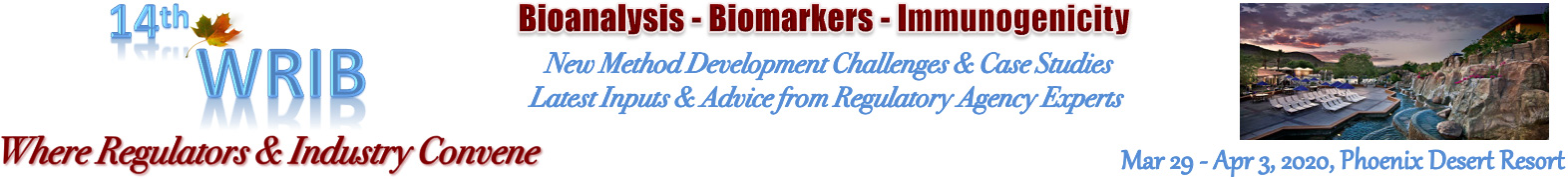 The 20th WRIB (Workshops on Recent Issues in Bioanalysis) will be built on the success of the previous meetings, especially the 19th WRIB where 1200 professionals (in person and remote) representing pharma/biotech companies, CROs, and multiple regulatory agencies convened to discuss current topics of interest in bioanalysis. High Quality, better compliance to regulations and scientific excellence have always been the foundations of WRIB.